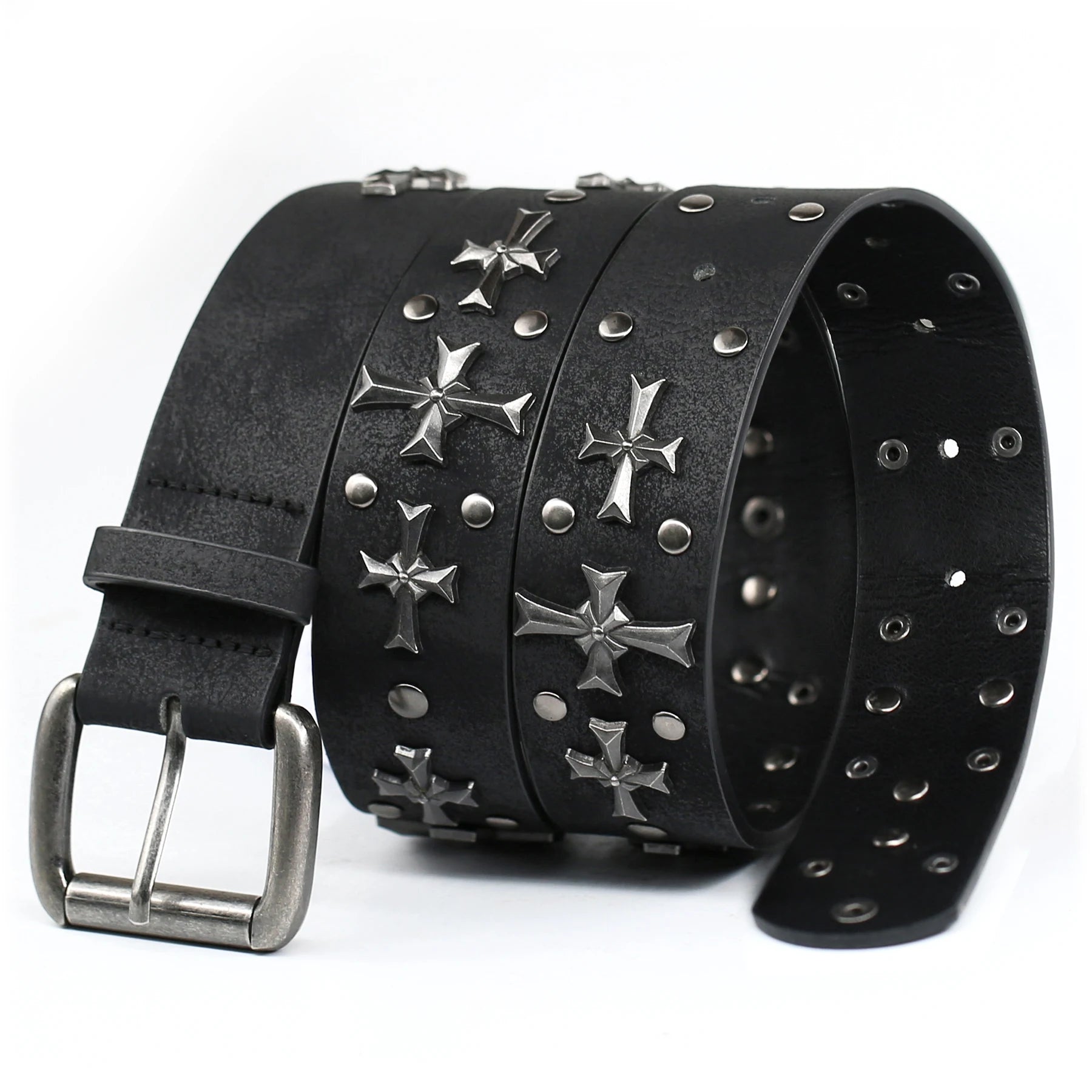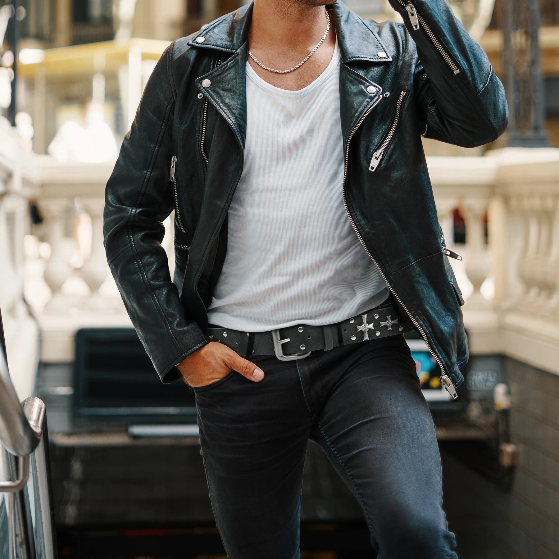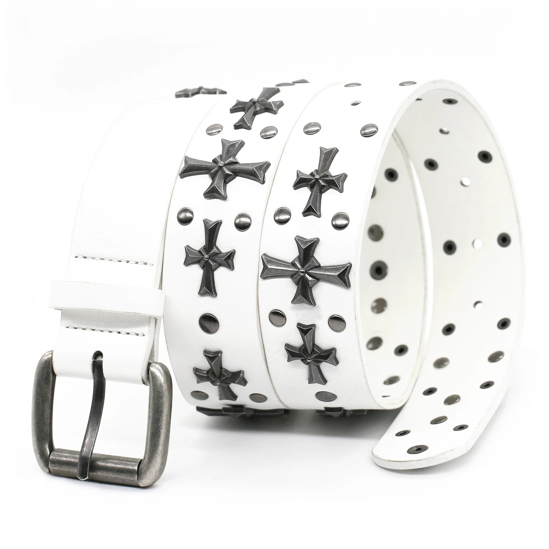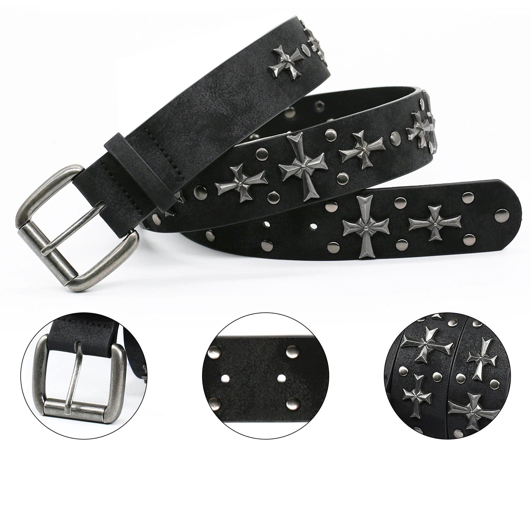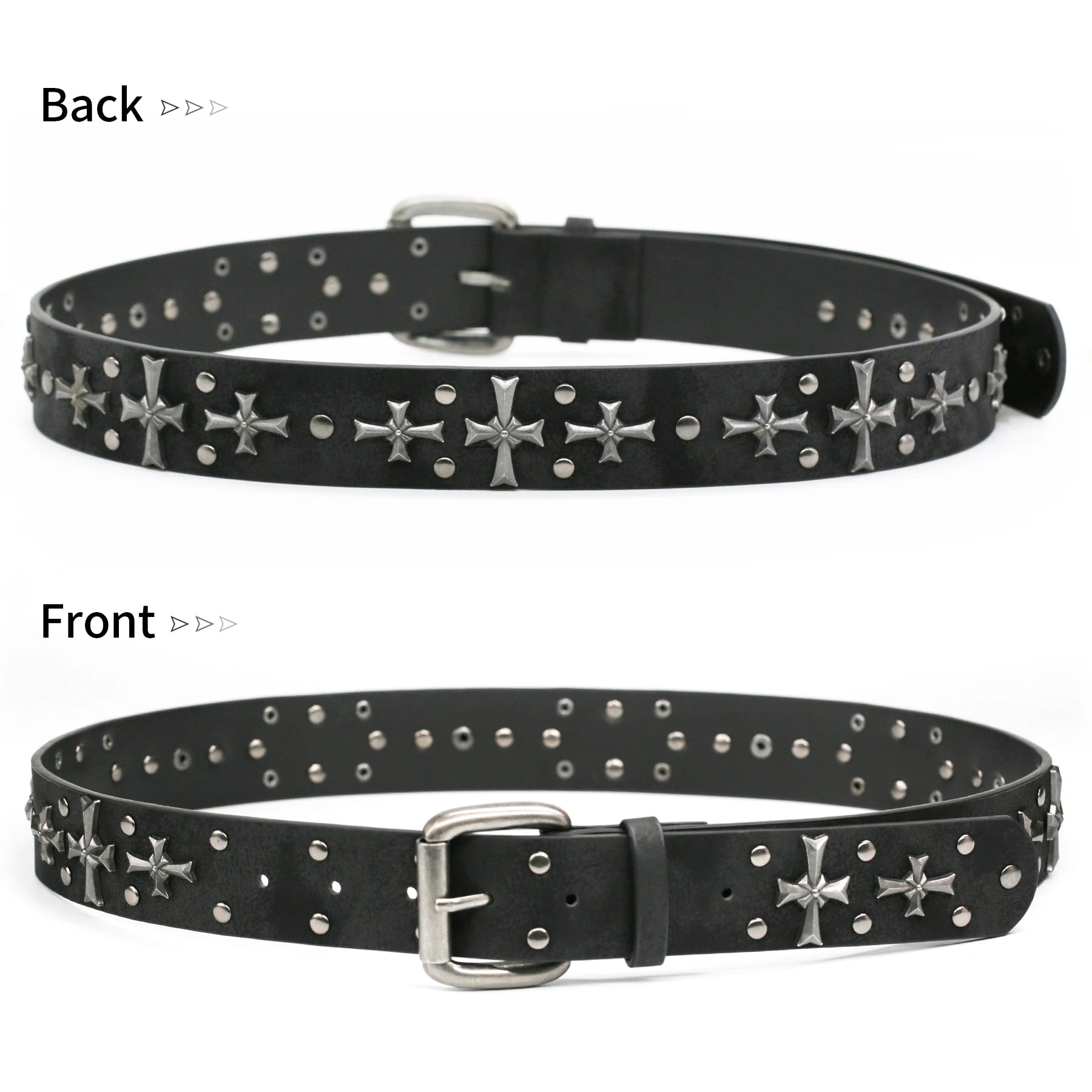 Edge meets attitude in the Steel Cross Revival Belt. With polished gothic-style cross rivets and matte silver studwork, this statement piece throws it back to gritty rock nights and underground shows.