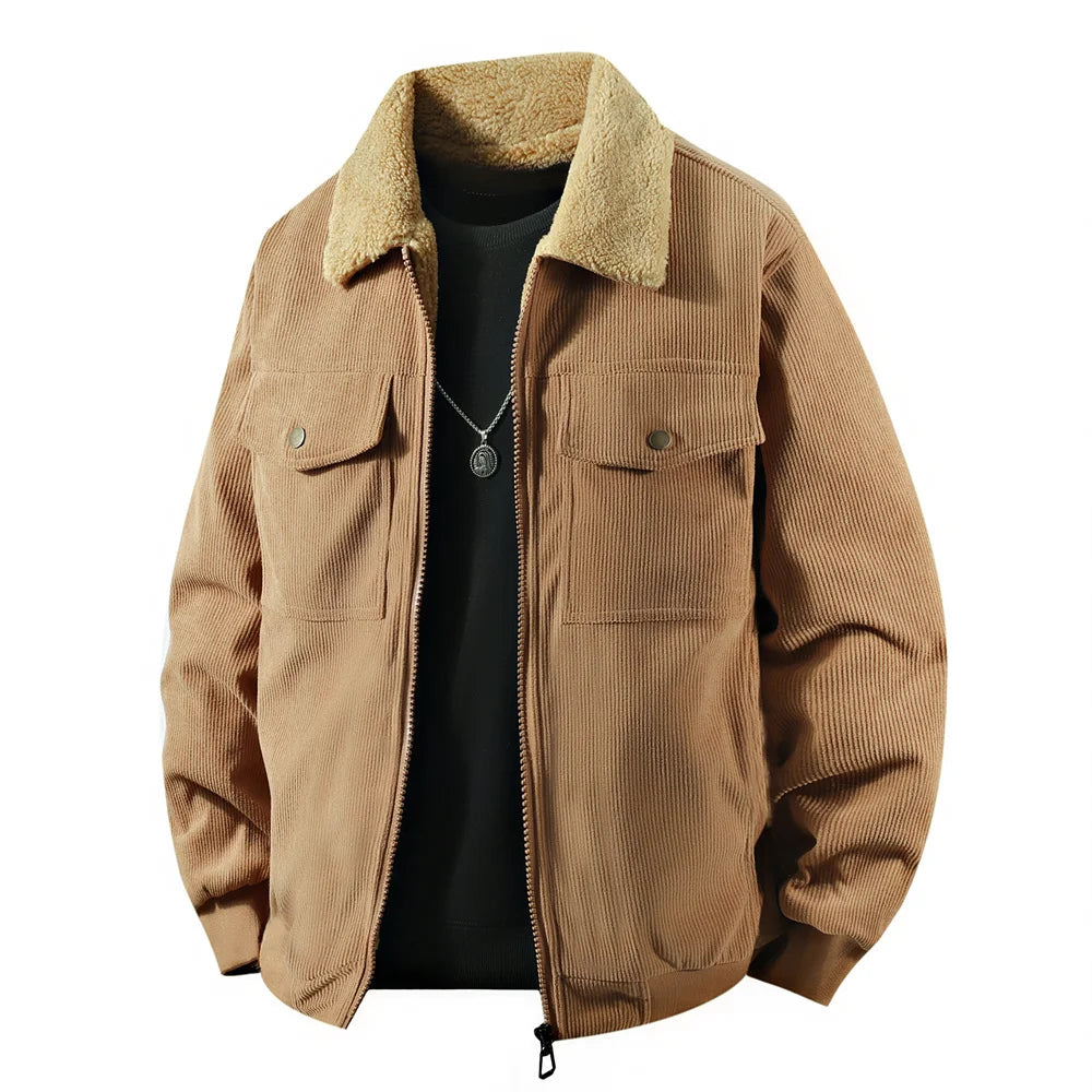 Brave the chill with confidence in the Frontier Corduroy Jacket, a fleece-lined corduroy essential designed for men who move through winter with purpose and style.